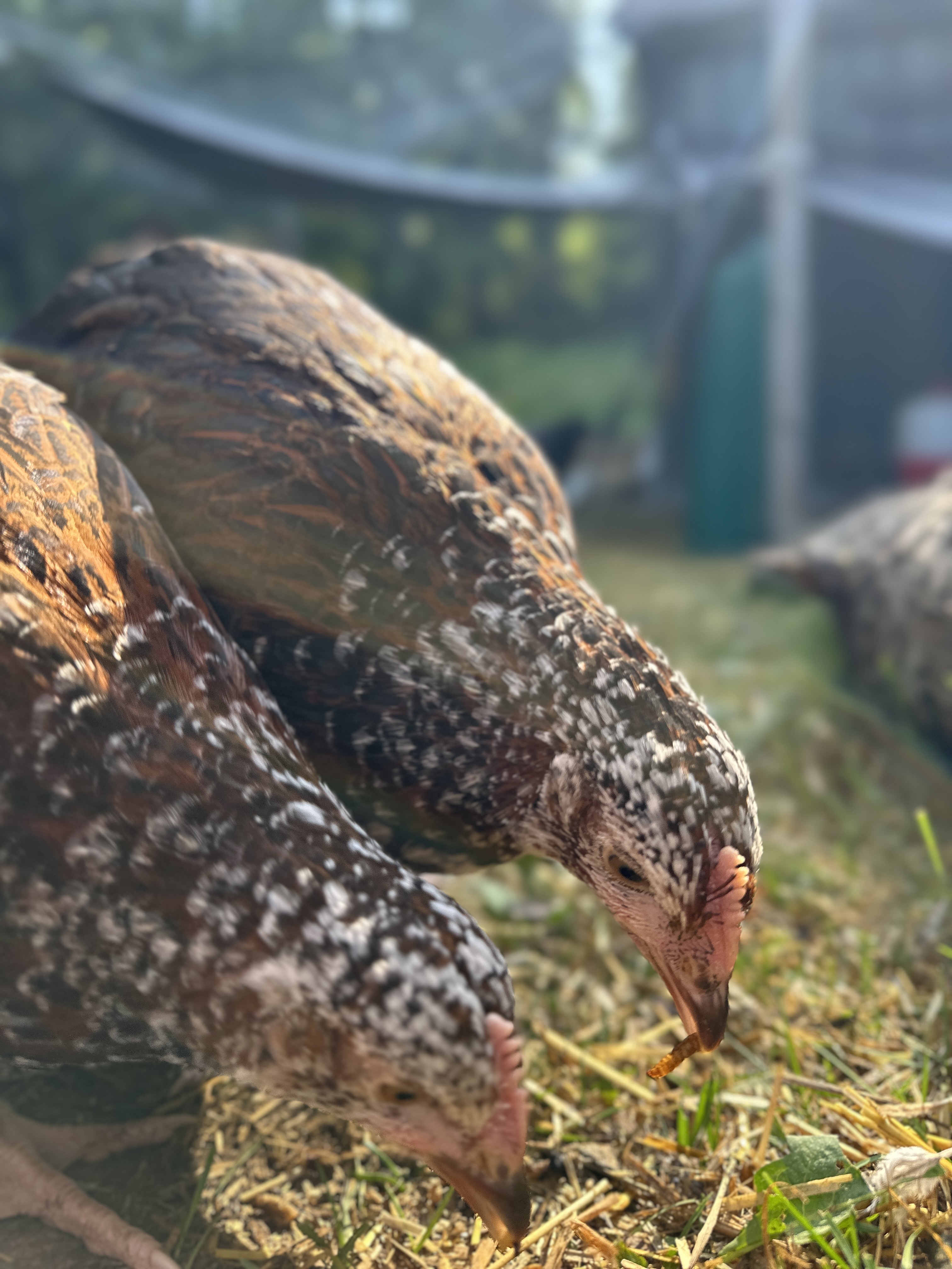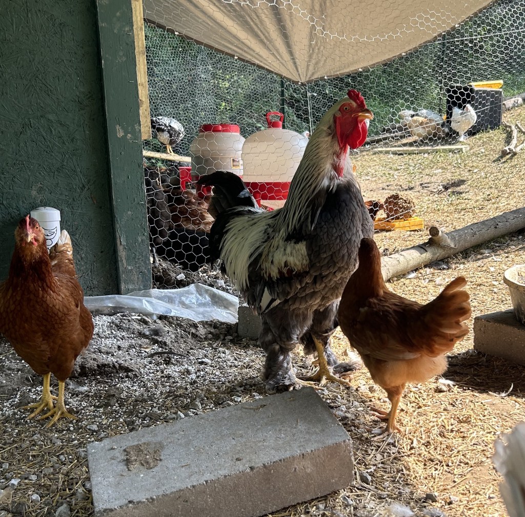 Great question! In chicken terms, there are hens and roosters. While hens are the stars of the show and lay all the delicious eggs we eat, roosters help with social interactions, flock stability, and protection. Our farm currently has two roosters for security and protection: Hercules and Ajax. Hercules is the primary rooster and Ajax is the second-in-command.