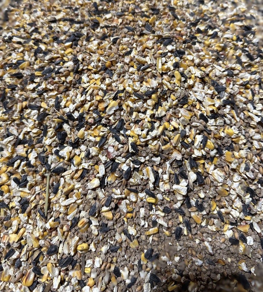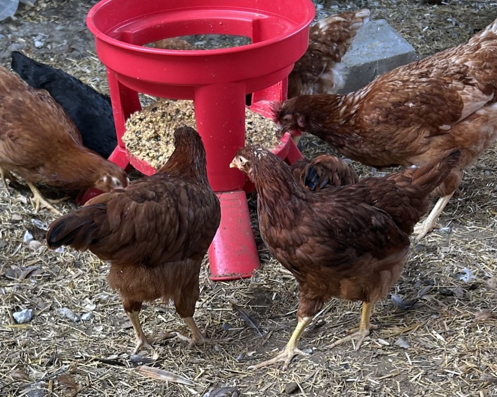 We believe in local and sustainable sources of feed for our chickens as well as ensuring that every chicken receives balanced nutrition and vitamins needed for healthy lives. We source most of our feed from the Ottawa Lake Co-op just up the road in Ottawa Michigan – picking up at least 1,000 pounds each month! We also source our treats from Drewes Farms – a multigenerational family farm – located in Custar, OH just a few miles down the road from our farm! The hens love the fresh black sunflower seeds, cracked corn, and wheat – all of which are non-GMO from Drewes Farms.